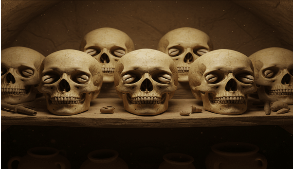 یکی از عجیبترین یافتههای باستانشناسی در شهر اریحا (Jericho)، جمجمههایی متعلق به ۹۰۰۰ سال پیش است. انسانهای نوسنگی، گوشت را از جمجمه جدا کرده و با استفاده از گچکاری بسیار ظریف، چهره فرد درگذشته را روی استخوان بازسازی میکردند. آنها حتی برای چشمها از صدف استفاده میکردند. این اولین بار در تاریخ است که گچ برای «جاودانه کردن چهره انسان» و نه ساختمان، به کار رفت.