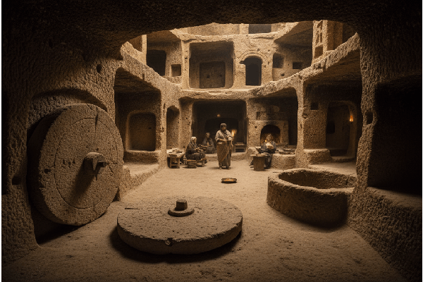 ج) شهر زیرزمینی درینکویو (ترکیه): گچ در اعماق زمین