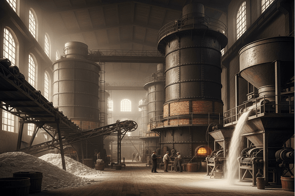 با وقوع انقلاب صنعتی در قرن ۱۹، تولید گچ از حالت سنتی و دستی خارج شد. کورههای مداوم اختراع شدند که میتوانستند گچ را با درجه خلوص بسیار بالا و به صورت انبوه تولید کنند.