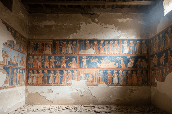 در خرابههای این قلعه باستانی، باستانشناسان پانلهای گچی خیرهکنندهای یافتهاند که به صورت چندبعدی تراشیده شدهاند. عجیب بودن این آثار در این است که هنرمندان آن زمان، با ترکیب گچ و شیره گیاهی، چنان استحکامی به آن بخشیده بودند که این نقوش ظریف قرنها زیر خوار و خاک دوام آورده و تخریب نشدهاند.
